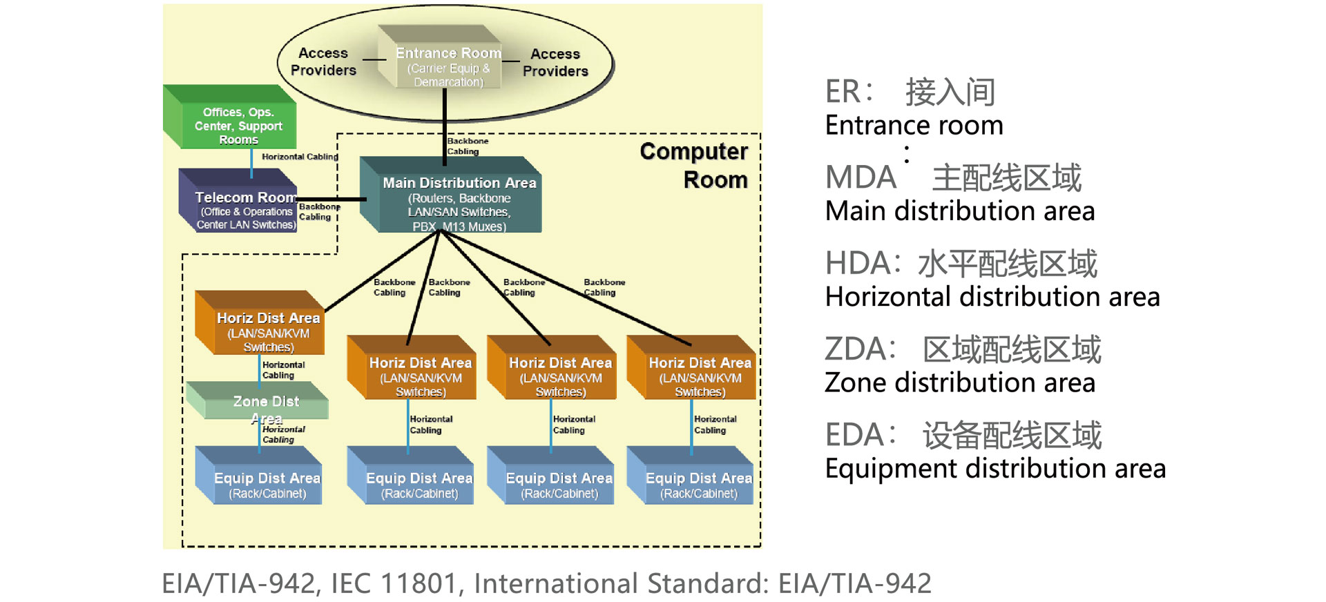 西騰電子數(shù)據(jù)中心布線系統(tǒng)采用的是:即插即用,高密度、可擴展,預端接光纜系統(tǒng)解決方案,采用模塊化的系統(tǒng)管理方式和預端接組件,可以減少安裝時間,實現(xiàn)數(shù)據(jù)中心光纖網(wǎng)絡更快的移動、新增和變更。 該系統(tǒng)全系列光纖產(chǎn)品均采用低損耗光纖連接器及彎曲不敏感光纖(彎曲半徑< 7.5mm),實現(xiàn)了更小的主干光纜衰減及彎曲性能。