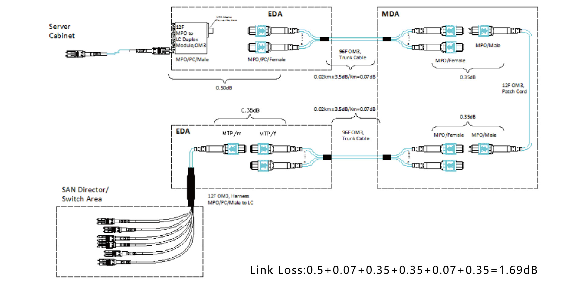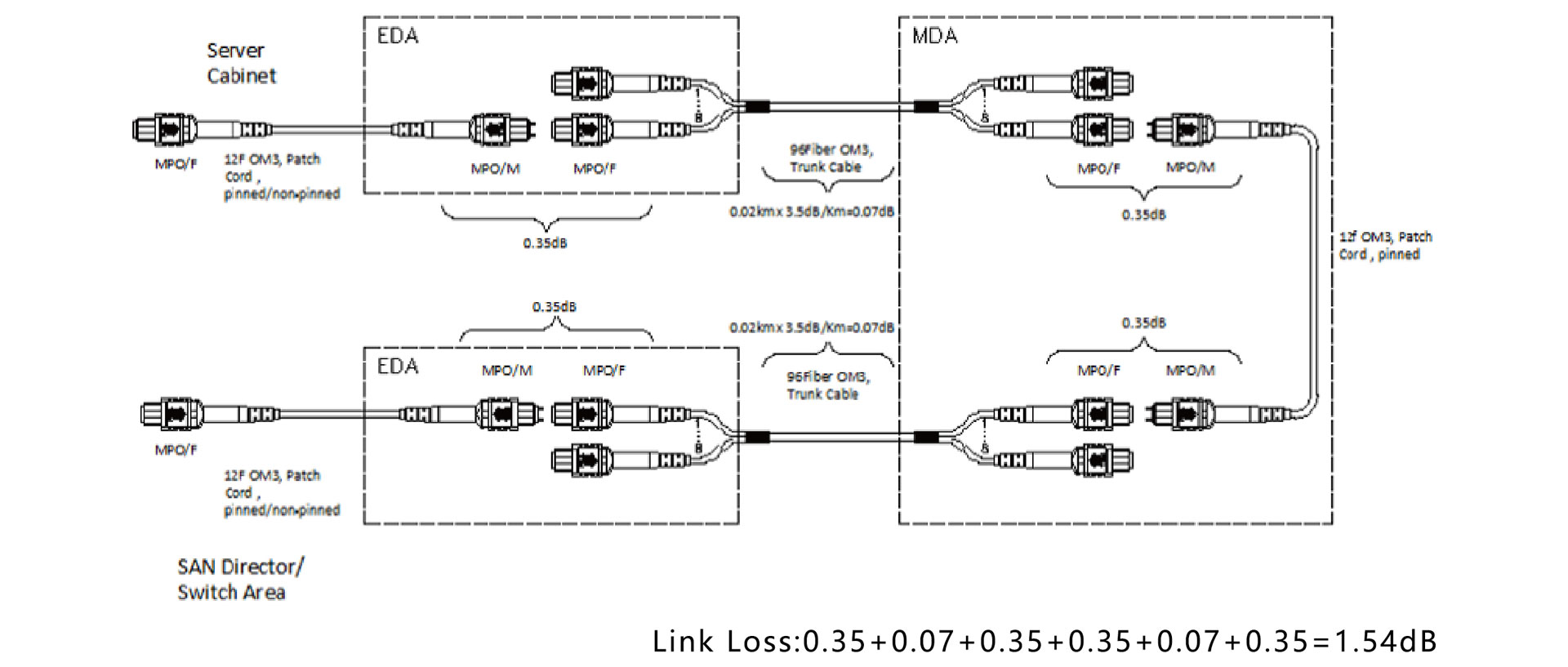 采用高帶寬激光優(yōu)化50/125um(OM3、OM4)光纖網(wǎng)絡,為處理高速率應用提供了廣闊空間,能夠靈活的傳送串行信號和并行信號,并行光纖技術(shù)如高速互聯(lián),和目前使用的40G/100G以太網(wǎng)都是基于MPO主干光纜系統(tǒng)而實現(xiàn)的。